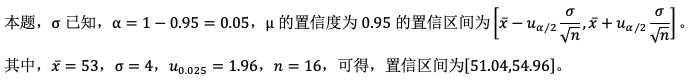 【正确答案】:[51.04,54.96]