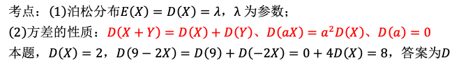 设随机变量X服从参数为2的泊松分布,则D(9—2X)=( ) 作者:高老师 时间:2024-07-28 浏览 0 设随机变量X服从参数为2的泊松分布,则D(9—2X)=( )A、1B、4C、5D、8【正确答案】:D【题目解析】: 📱 扫码体验刷题小程序 扫一扫使用我们的微信小程序