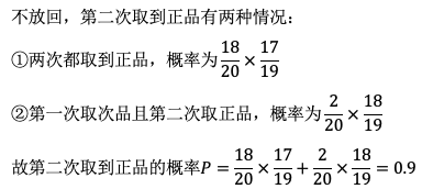 20件产品中,有2件次品,不放回地从中接连取两次,每次取一件产品,则第二次取到的是正品的概率为( )。 作者:高老师 时间:2024-07-28 浏览 0 20件产品中,有2件次品,不放回地从中接连取两次,每次取一件产品,则第二次取到的是正品的概率为( )。【正确答案】:0.9【题目解析】: 📱 扫码体验刷题小程序 扫一扫使用我们的微信小程序