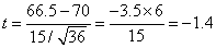 设某次考试的考生成绩服从正态分布, 从中随机地抽取36位考生的成绩, 算得平均成绩是66.5分, 标准差是15分.问在显著性水平α=0.05下, 是否可以认为这次考试全体考生的平均成绩为70分? (附: