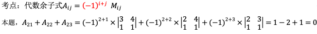 3阶行列式第2行元素的代数余子式之和 作者:高老师 时间:2024-07-29 浏览 0 3阶行列式第2行元素的代数余子式之和 【正确答案】:0【题目解析】: 📱 扫码体验刷题小程序 扫一扫使用我们的微信小程序