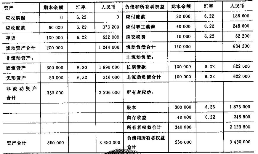 折算后的资产负债表2015年12月31日 单位:元