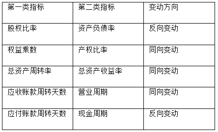 要求:分别指出表格中每一行第一类指标发生变动时,第二类指标的变动情况(同向变动、反向变动、无影响)。