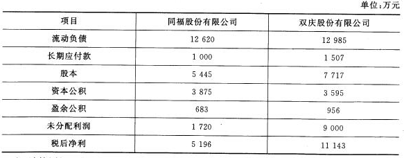 同福股份有限公司和双庆股份有限公司属于同一行业的两个不同企业,有关资料如下表: