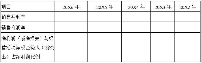 其他资料显示:近两年公司在实施新战略发展过程中,将大量现金花费在建造新门店和门店的装修上。假设行业销售毛利率与销售利润率的平均水平分别为25%~27%和8%~12%。 要求:完成下表,通过计算相关指标,分析净利润(或净损失)与经营活动净现金流量之差异的原因,并针对该案例对经营活动现金流量质量作具体的分析。