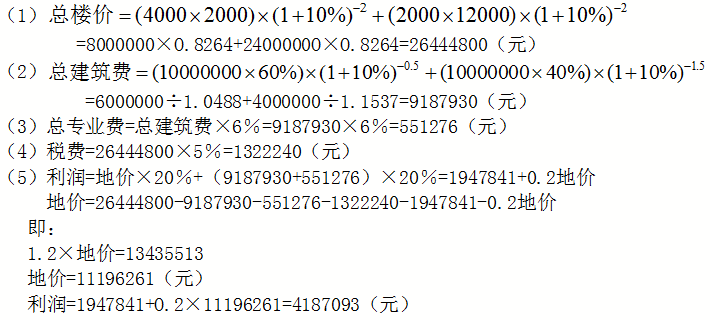 (5)计算该时点的利润和地价。(计算结果以“元”为单位,取整)