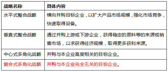 通过并购与本企业完全无关的目标企业,实现多角化经营的战略属于( ) 作者:高老师 时间:2024-07-19 浏览 0 通过并购与本企业完全无关的目标企业,实现多角化经营的战略属于( )A、水平式整合战略B、垂直式整合战略C、中心式多角化战略D、复合式多角化战略【正确答案】:D【题目解析】:本题考查对不同并购战略的区分。关键点:完全无关。 📱 扫码体验刷题小程序 扫一扫使用我们的微信小程序