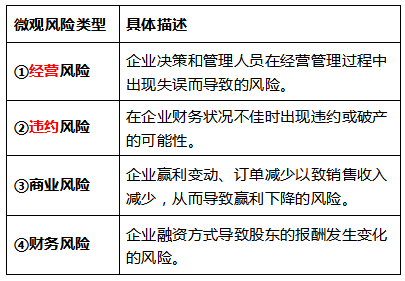 下列选项不属于微观性风险的是( ) 作者:高老师 时间:2024-07-19 浏览 1 下列选项不属于微观性风险的是( )A、政治风险B、社会风险C、购买力风险D、违约风险E、经营风险【正确答案】:ABC【题目解析】:本题考查微观性风险的种类。政治风险、社会风险、经济风险(又包括利率风险、购买力风险、市场风险)都属于宏观性风险。因此答案选ABC。 📱 扫码体验刷题小程序 扫一扫使用我们的微信小程序