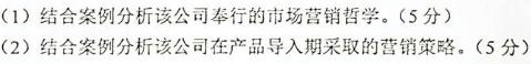 (2)缓慢撇脂(2分)——该公司采用较高的价格,同时认为这样“好”的产品无需进行大量促销宣传,即高价格、低促销。(3分)