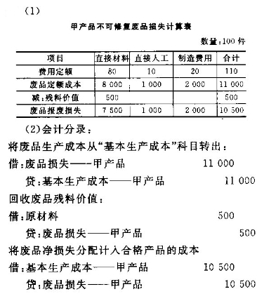 某工业企业生产甲产品1000件,在生产过程中,产生不可修复废品100件,该企业的不可修复废品成本按定额成本计价。每件废品原材料费 作者:高老师 时间:2024-07-30 浏览 0 某工业企业生产甲产品1000件,在生产过程中,产生不可修复废品100件,该企业的不可修复废品成本按定额成本计价。每件废品原材料费用定额为80元,假定每件废品的工时定额为2小时,每小时的费用定额为:直接人工费用5元,制造费用10元。100件废品回收的残料作为辅助材料入库,计价500元。不可修复废品净损失由当月产品成本负担。[要求](1)填制不可修复废品损失计算表。(2)编制废品损失的相关会计分录。【正确答案】: 📱 扫码体验刷题小程序 扫一扫使用我们的微信小程序