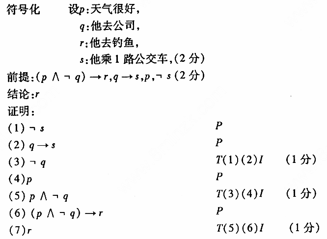 构造下列推理的证明。如果天气很好并且他没去公司,他必去钓鱼。如果他去公司,他会乘1路公交车。今天天气很好。他没有乘1路公交车。所 作者:高老师 时间:2024-08-03 浏览 1 构造下列推理的证明。如果天气很好并且他没去公司,他必去钓鱼。如果他去公司,他会乘1路公交车。今天天气很好。他没有乘1路公交车。所以他去钓鱼。【正确答案】: 📱 扫码体验刷题小程序 扫一扫使用我们的微信小程序