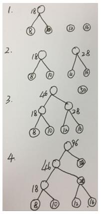 设电文字符集是{e1,e2,e3,e4,e5},它们出现的次数分别为:{50,10,16,8,12}。现要为该字符集设计哈夫曼编 作者:高老师 时间:2024-08-04 浏览 0 设电文字符集是{e1,e2,e3,e4,e5},它们出现的次数分别为:{50,10,16,8,12}。现要为该字符集设计哈夫曼编码。请回答下列问题。 (1)画出得到的哈夫曼树。 (2)给出各符号的哈夫曼编码。【正确答案】:(1)(2)字符 e1 e2 e3 e4 e5 编码 1 001 011 000 010 【题目解析】:(1)哈夫曼树构造过程:(2)哈夫曼树左分支表示0,右分支表示1.以根结点到叶结点路径上的分支字符组成的串作为该叶结点的字符编码。 📱 扫码体验刷题小程序 扫一扫使用我们的微信小程序