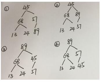 一组记录的关键码为(45,68,57,13,24,89),利用堆排序算法进行升序排序,建立的初始堆为 作者:高老师 时间:2024-08-04 浏览 0 一组记录的关键码为(45,68,57,13,24,89),利用堆排序算法进行升序排序,建立的初始堆为A、68,45,57,13,24,89B、89,68,57,13,24,45C、89,68,57,45,24,13D、89,57,68,24,45,13【正确答案】:B【题目解析】:根据教材183页堆排序定义,建堆过程如下: 📱 扫码体验刷题小程序 扫一扫使用我们的微信小程序