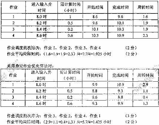 在一个多道批处理系统中,有如下表格所示的作业序列,井且作业都是仅作计算的。假定当所有作业均进入输入井时立即开始作业调度,忽略系统管理的开销时间。要求分别计算采用先来先服务算法和计算时间短的作业优先算法时,这批作业的调度顺序和作业平均周转时间。