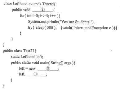 以下程序创建并启动了一个线程。 作者:高老师 时间:2024-08-04 浏览 0 以下程序创建并启动了一个线程。 【正确答案】:(1)run()(2)Lefthand()(3)start()【题目解析】:start()方法可以使新创建的线程投入运行, run()方法可以完成线性的功能。 📱 扫码体验刷题小程序 扫一扫使用我们的微信小程序
