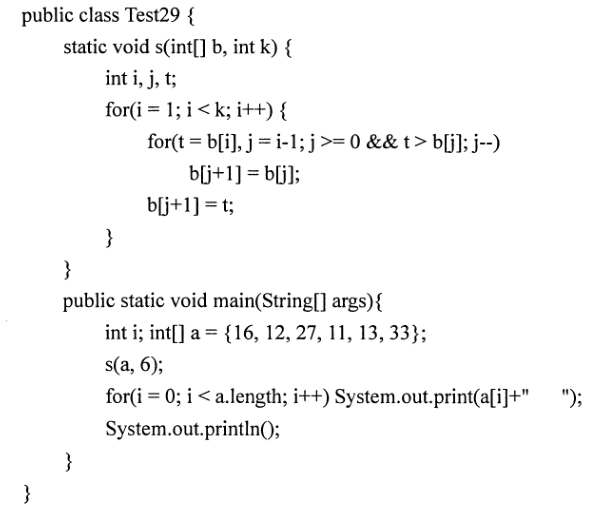 阅读以下程序,请写出该程序的输出结果。 作者:高老师 时间:2025-08-20 浏览 0 阅读以下程序,请写出该程序的输出结果。【正确答案】:33 27 16 13 12 11 (6分) 📱 扫码体验刷题小程序 扫一扫使用我们的微信小程序