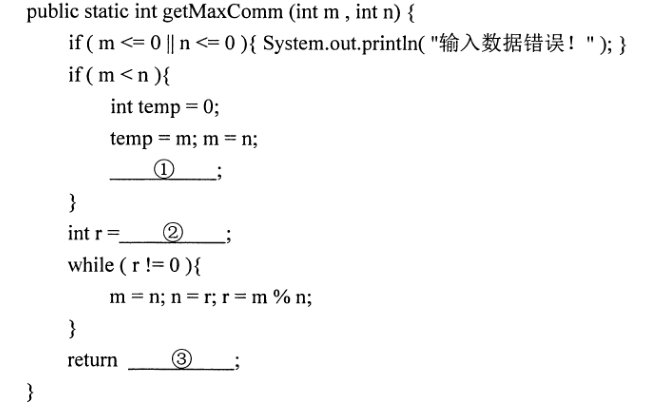 以下方法 getMaxComm()计算正整数m和n的最大公约数并返回。注:方法中使用的是辗转相除法。 作者:高老师 时间:2024-08-04 浏览 0 以下方法 getMaxComm()计算正整数m和n的最大公约数并返回。注:方法中使用的是辗转相除法。【正确答案】:①n=temp②m%n③n 📱 扫码体验刷题小程序 扫一扫使用我们的微信小程序