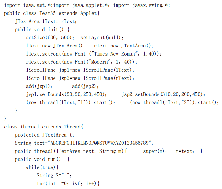 【正确答案】:(1)左边一个文本区(lText)每次追加6位随机字母,右边一个(rText)每次追加6位随机数字