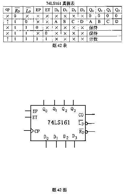 74LS161为二进制加法计数器,真值表如题42表所示,试用74LS161和与非门设计一个七进制计数器。(要求利用异步置零端)