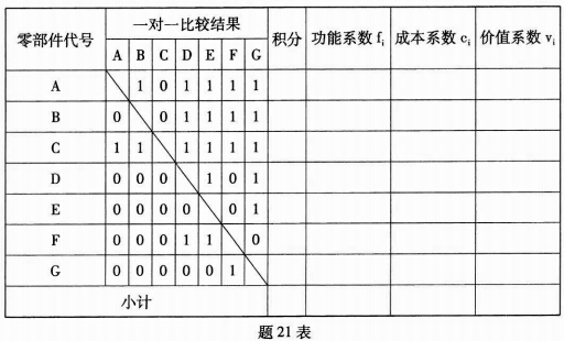 解: (1) 价值系数计算见答 21 表。 (6分)