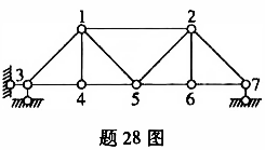 分析题28图结构体系的几何组成。 作者:高老师 时间:2024-08-04 浏览 0 分析题28图结构体系的几何组成。【正确答案】:去除作为一元体的基础并划分三刚片。刚片I(1345部分)、Ⅱ(5672部分)、Ⅲ(12杆)由不在一直线上的三个铰(I、Ⅱ)、(Ⅱ、Ⅲ)、(I、Ⅲ)两两相联,符合几何不变的组成规则。所以,体系几何不变,并且无多余约束。(或:三刚片铰结,加二元体,也可得分。) 📱 扫码体验刷题小程序 扫一扫使用我们的微信小程序