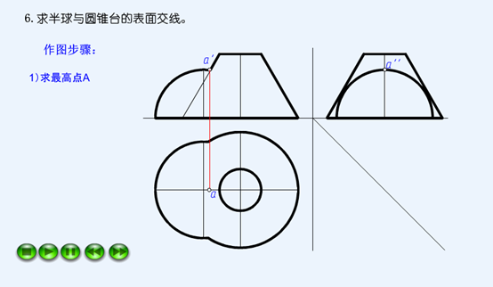 补绘半球与圆台的表面交线