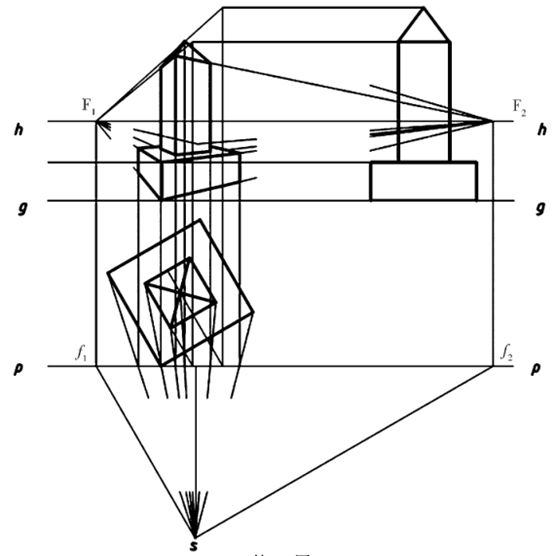 (1)作出基灭点f1、2及灭点F1、F2得2分;