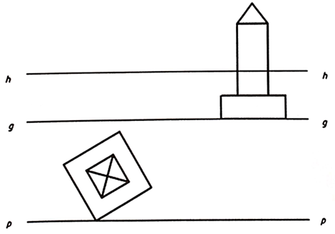 (3)做出真高线并画出与灭点的连接线2分;