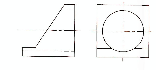 画出被切割的带圆柱形孔的物体的水平投影。
