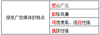 报纸广告媒体的特点主要有:受众广泛;价格低廉;( )、适应性强;选择性强。 作者:高老师 时间:2024-08-06 浏览 0 报纸广告媒体的特点主要有:受众广泛;价格低廉;( )、适应性强;选择性强。 【正确答案】:可信度高【题目解析】:助记:售(受)价应可选。 📱 扫码体验刷题小程序 扫一扫使用我们的微信小程序