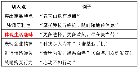 撰写广告口号时,为了给读者留下深刻的印象,可以从以下几方面入手: