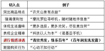 撰写广告口号时,为了给读者留下深刻的印象,可以从以下几方面入手: