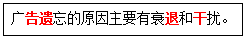 广告遗忘的原因主要有( )和干扰。 作者:高老师 时间:2024-08-06 浏览 0 广告遗忘的原因主要有( )和干扰。【正确答案】:衰退【题目解析】:助记:高一推杆——高(告)一(遗)推(退)杆(干)。 📱 扫码体验刷题小程序 扫一扫使用我们的微信小程序