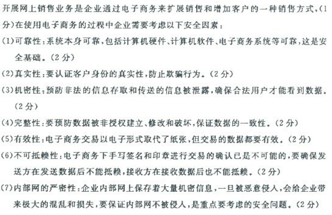 某一出版社要开展网上销售业务,请阐述它需要考虑的主要安全因素。 作者:高老师 时间:2024-08-07 浏览 1 某一出版社要开展网上销售业务,请阐述它需要考虑的主要安全因素。【正确答案】: 📱 扫码体验刷题小程序 扫一扫使用我们的微信小程序