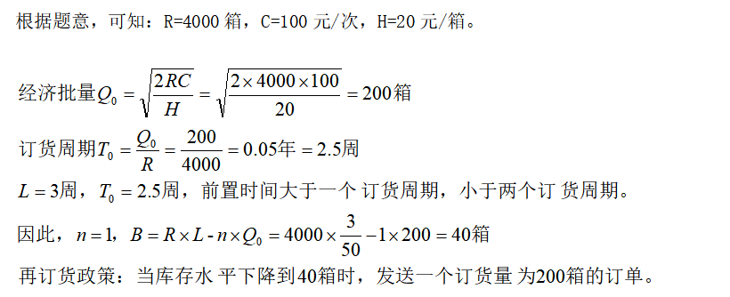 某服装企业每年需购进服装辅料5000箱。已知该商品的单位购进成本为200元,每次订购成本为100元,每箱商品每年储存成本为4元, 作者:高老师 时间:2024-08-07 浏览 2 某服装企业每年需购进服装辅料5000箱。已知该商品的单位购进成本为200元,每次订购成本为100元,每箱商品每年储存成本为4元,求经济批量、年库存总成本和年订购次数?【正确答案】: 📱 扫码体验刷题小程序 扫一扫使用我们的微信小程序