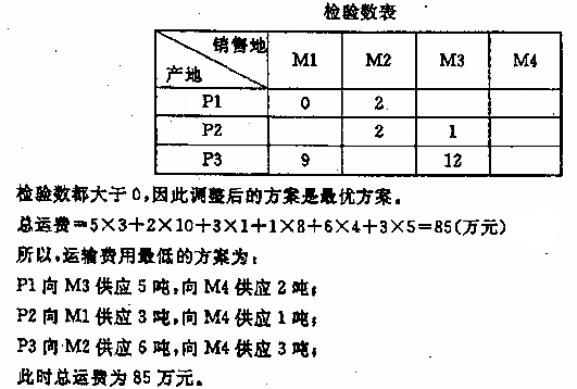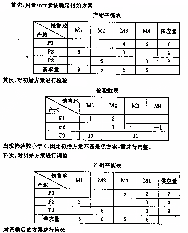 某种商品有三个产地,每天供应量分别为:P1供应量为7吨,P2供应量为4吨,P3供应量为9吨。要将这种商品分别运往四个地区销售,各地区每天的需要量为:M1需要量为3吨,M2需要量为6吨,M3需要量为5吨,M4需要量为6吨。各供应地和销售地的单位运价如表所示: