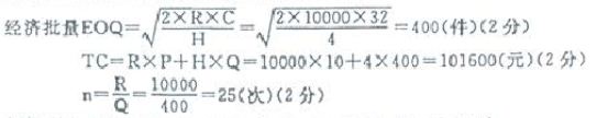 某企业每年需要购进某种商品10000件,已知该商品的单位购进成本为10元,订购成本为32元,年储存成本为4元,求经济批量、年库存 作者:高老师 时间:2024-08-07 浏览 2 某企业每年需要购进某种商品10000件,已知该商品的单位购进成本为10元,订购成本为32元,年储存成本为4元,求经济批量、年库存总成本和年订购次数?【正确答案】: 📱 扫码体验刷题小程序 扫一扫使用我们的微信小程序