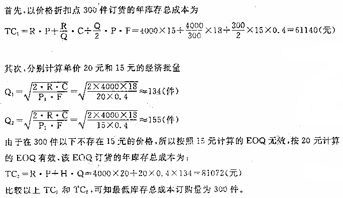 某电子商务企业每年购进某种商品4000件,供应商规定的价格为:300件以下,每件20元,300件或300件以上,每件l5元。若订 作者:高老师 时间:2024-08-07 浏览 2 某电子商务企业每年购进某种商品4000件,供应商规定的价格为:300件以下,每件20元,300件或300件以上,每件l5元。若订购成本为l8元,储存成本率40%,求经济订货量。【正确答案】: 📱 扫码体验刷题小程序 扫一扫使用我们的微信小程序