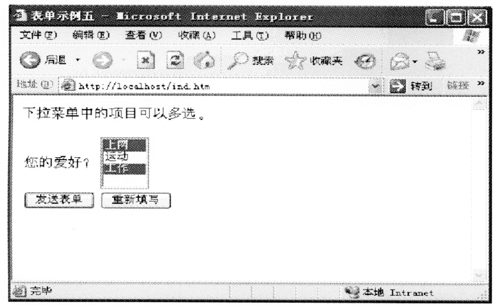 (2)页面显示“下拉菜单中的项目可以多选。”;
