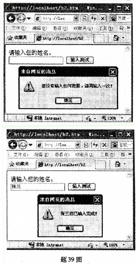 (2)函数各为testl,若用户没有输入数据,则提示“您没有输入任何数据,请再输入一次!”,否则提示“您已输入完成!”。