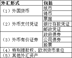 《中国人民共和国外汇管理条例》规定,下列以外汇表示的,可以用作国际清偿的手段和资产为外汇形式: