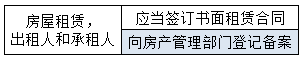 书面房屋租赁合同签订后,依法向房产管理部门登记备案的主体是( ) 作者:高老师 时间:2024-08-10 浏览 0 书面房屋租赁合同签订后,依法向房产管理部门登记备案的主体是( )A、出租人B、承租人C、出租人和承租人D、出租人或承租人【正确答案】:C【题目解析】:本题可从“登记备案”入手。相关规定如下:故正确答案为:C。 📱 扫码体验刷题小程序 扫一扫使用我们的微信小程序