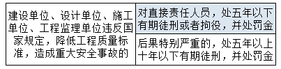 建设单位、设计单位、施工单位、工程监理单位违反国家规定,降低工程质量标准,造成重大安全事故的,对直接责任人员,处( )