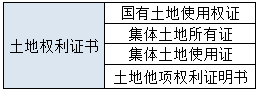 本题可从“土地权利证书”入手。土地权利证书类型如下: