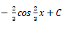∫sin 2/3 xdx= 作者:高老师 时间:2024-07-20 浏览 2 ∫sin 2/3 xdx=A、2/3 cos 2/3 x+CB、3/2 cos 2/3 x+CC、D、【正确答案】:D【题目解析】:本题主要考查的知识点是不定积分的第一换元积分法. 📱 扫码体验刷题小程序 扫一扫使用我们的微信小程序
