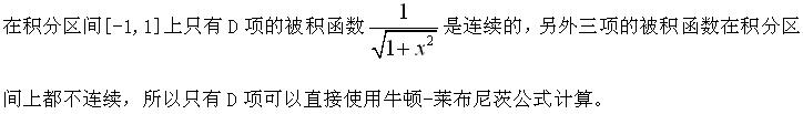 下列积分中可直接用牛顿-莱布尼茨公式计算的是( )。 作者:高老师 时间:2024-07-20 浏览 0 下列积分中可直接用牛顿-莱布尼茨公式计算的是( )。A、B、C、D、【正确答案】:D【题目解析】:【答案解析】 📱 扫码体验刷题小程序 扫一扫使用我们的微信小程序