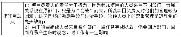 下列关于矩阵制的缺点,说法正确的是( ) 作者:高老师 时间:2024-08-12 浏览 0 下列关于矩阵制的缺点,说法正确的是( )A、由于项目组成人员来自各个部门,当任务完成以后,仍要回原部门,因而容易产生临时观念,对工作有一定影响B、妨碍了必要的集中领导和统一指挥,形成多头领导;不利于建立和健全各级行行政负责人和职能科室的责任制C、职能部门之间的协作和配合性较差,职能部门的许多工作要直接向上层领导报告请示才能处理D、不易为模拟的生产单位明确任务,造成考核上的困难;各生产单位领导人不易了解企业的全貌【正确答案】:A【题目解析】: 📱 扫码体验刷题小程序 扫一扫使用我们的微信小程序