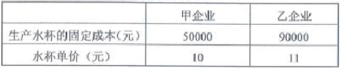 (1)分别计算甲、乙两企业生产水杯的盈亏平衡产量: