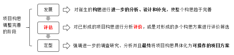 破题点:构思的分析评价;潜伏阶段不属于项目构思的调整完善阶段,D选项错误