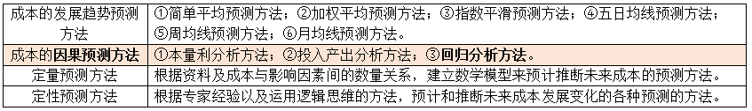 属于成本因果预测方法的是() 作者:高老师 时间:2024-08-12 浏览 0 属于成本因果预测方法的是()A、平均线预测方法B、简单平均预测方法C、回归分析法D、定量分析法【正确答案】:C【题目解析】:本题破题点:“成本因果预测方法”,关键在于区分成本预测的方法,如下表:故本题的正确答案为C。 📱 扫码体验刷题小程序 扫一扫使用我们的微信小程序